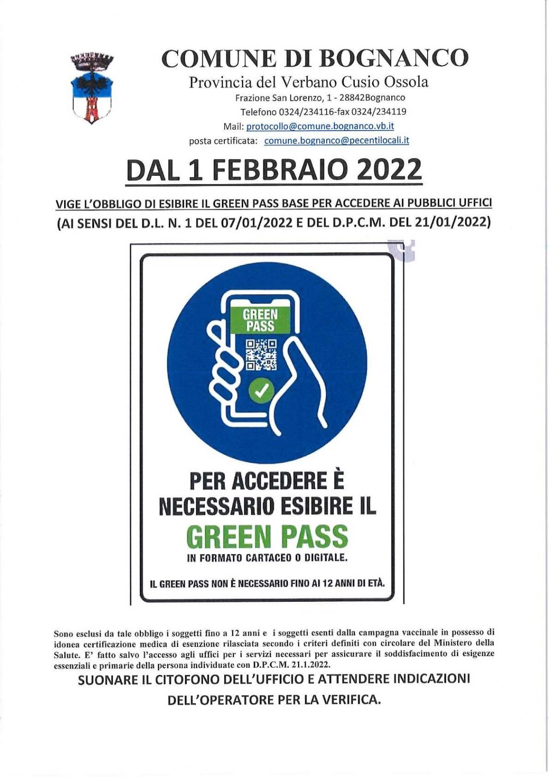 OBBLIGO DI ESIBIRE IL GREE PASS PER ACCEDERE AI PUBBLICI UFFICI